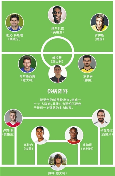 事实上,不仅是德国队,很多强队都被伤病折腾得够呛。