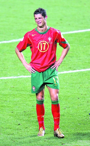 2004年欧洲杯决赛落败后,当时只有19岁的C罗哭得十分伤心。