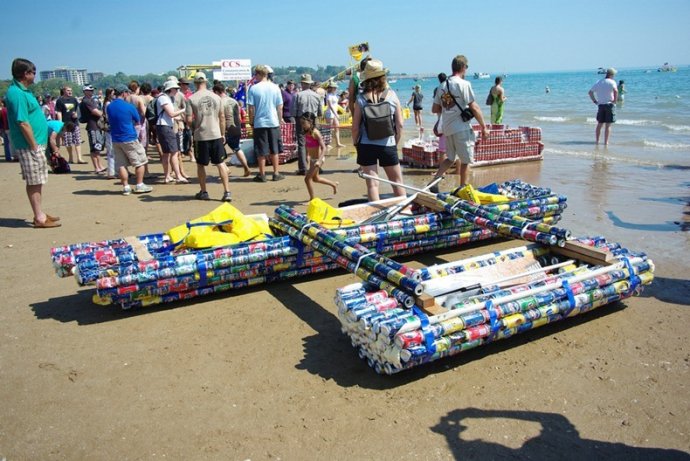 澳大利亚举行年度啤酒罐赛舟会 不光比速度