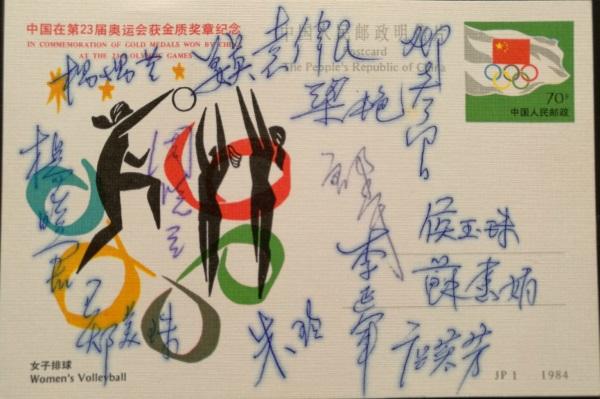 带有中国女排队员签名的明信片