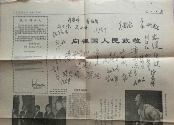 《人民日报》影印的1984年奥运冠军签名