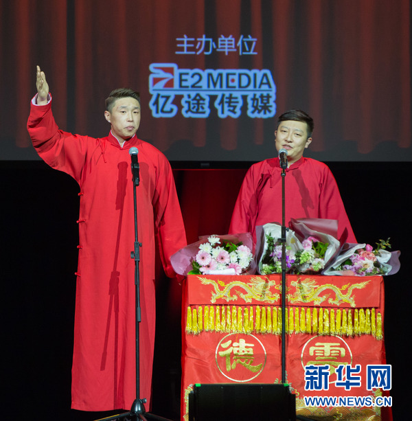 10月9日,悉尼,烧饼(左)和曹鹤阳(右)在演出中。新华网发(朱宏业摄)