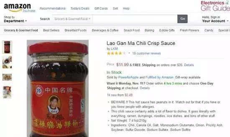 “老干妈”是中国知名的调味品品牌,在国内市场的售价也只属平民阶段,绝对算不上是奢侈品。但是在美国,这是只有有钱人才吃得起的奢侈品,在“亚马逊”网购“老干妈”,价格为 10-20美元不等,说是奢侈品并不为过。甚至还有海外的“老干妈”爱好者在社交媒体上成立了爱好者协会,有一千多个来自世界各地的成员!