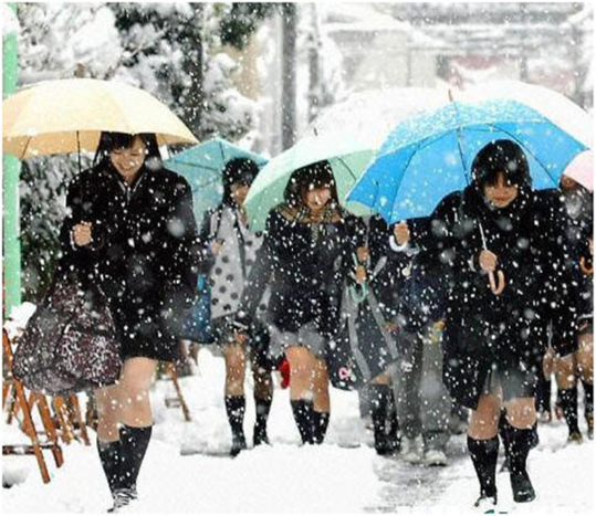 “挨冻”是日本孩子从小必修的一门功课,日本的女孩很少会在裤子里面套上秋裤。
