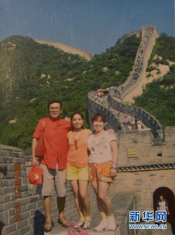 2007年8月11日,小胡安·弗朗西斯科夫妻和女儿玛利亚(中)在北京长城上合影(翻拍资料照片)。新华社发