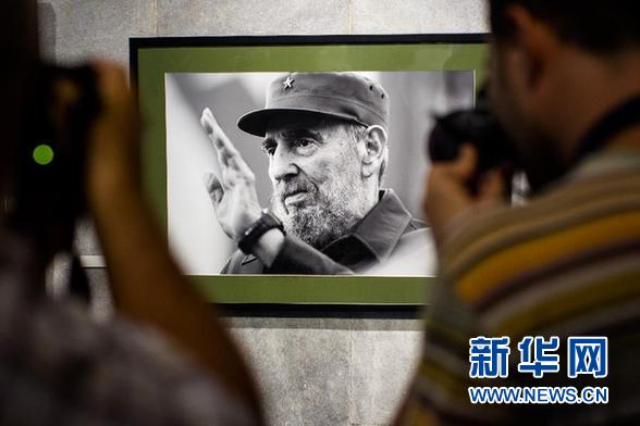 这是2014年8月12日,在菲德尔·卡斯特罗88岁生日前夕,观众在古巴哈瓦那一幅卡斯特罗的照片前拍照。 新华社记者刘彬摄