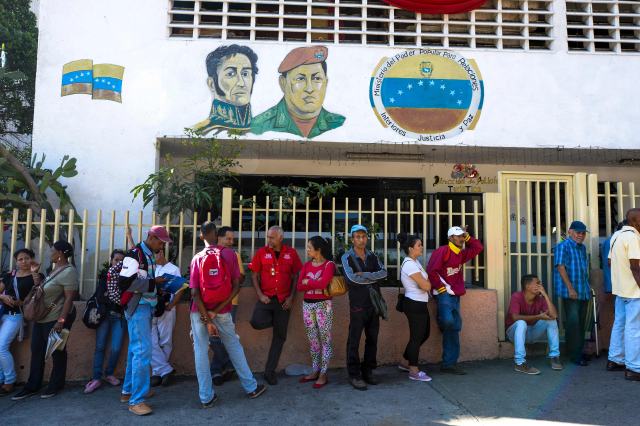 在委内瑞拉首都加拉加斯,人们在银行外排队等待兑换100玻利瓦尔纸币。(图片来源:新华社)