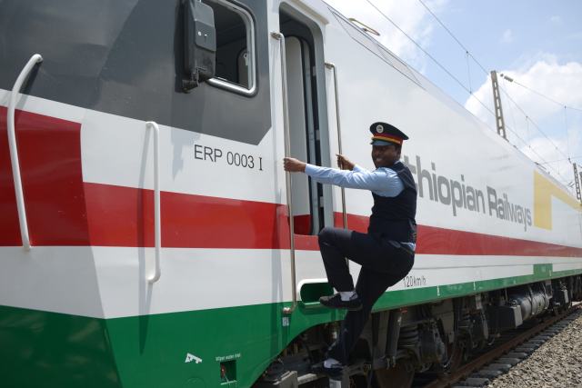 2016年10月5日,由中国企业采用全套中国标准和中国装备建造的非洲第一条现代电气化铁路——埃塞俄比亚首都亚的斯亚贝巴至吉布提首都吉布提铁路(亚吉铁路)正式通车。(新华社记者 孙瑞博 摄)