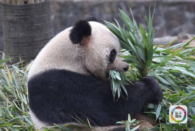 在中国大熊猫保护研究中心都江堰基地拍摄的老年大熊猫“月月”。 (新华社记者薛玉斌摄)