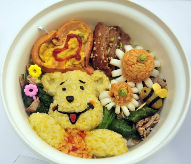 2013年5月14日拍摄的以香松拌饭、地瓜饭、三色豆为原料制作的《维尼的欢乐餐盒》。(新华社发,吴景腾摄)