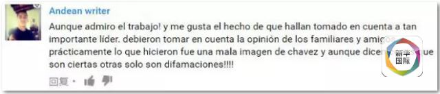 这位网友说:“尽管我很喜欢这部电视剧,也很高兴他们(剧组)对这样一位重要的领导人给予重视,可是他们应该考虑到他的家人和朋友的感受。他们基本上只讲述了查韦斯负面的事迹,有些是真的,有些根本就是诽谤!”