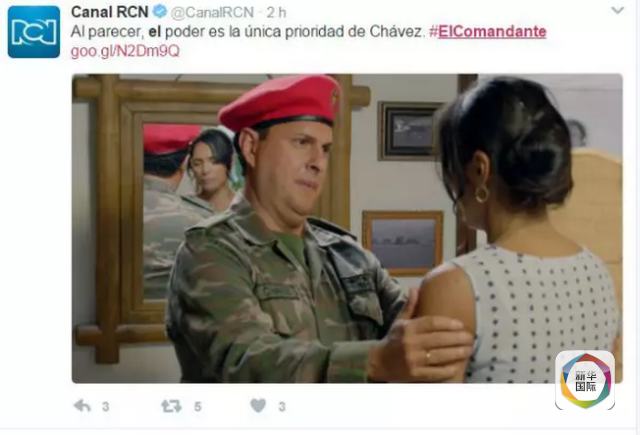 首播该剧的RCN电视台在官推中配着剧中的画面写道:“看起来,查韦斯最在乎的是权力。”