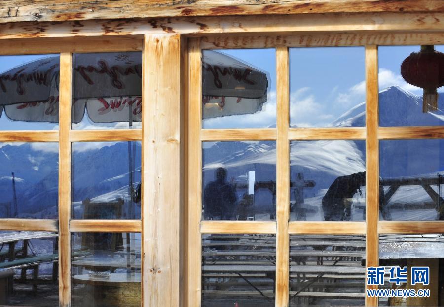 1月26日,在瑞士一家滑雪场,山腰一家餐厅的窗户上映出雪山。新华社记者叶平凡摄