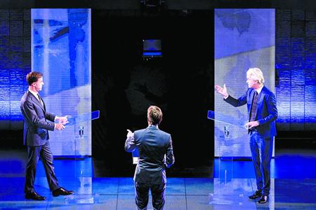 3月13日,在荷兰鹿特丹,荷兰首相、自民党领导人吕特(左)和自由党领导人海尔特·维尔德斯(右)参加电视辩论。新华社/法新