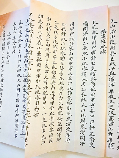 《顺风相送》是一部航海指南,共127则,主要记录了关于气象方面的观察方法、州府山形水势、前往各地的航程等。其中“福建往琉球”一则记载了福建到琉球的海路,第一次出现了“钓鱼屿”(即钓鱼岛)、“赤坎屿”(即赤尾屿)的名称。书中有关原文如下: