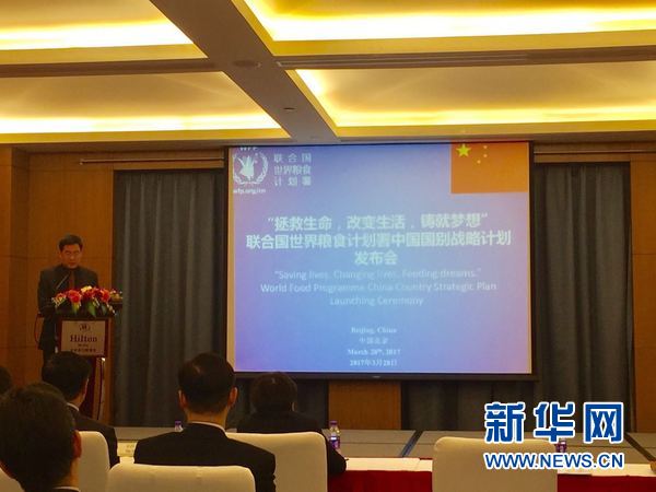 3月28日,中国农业部国际合作司司长隋鹏飞出席联合国世界粮食计划署中国国别战略计划(2017-2021)发布会并致辞。新华网 张茵 摄