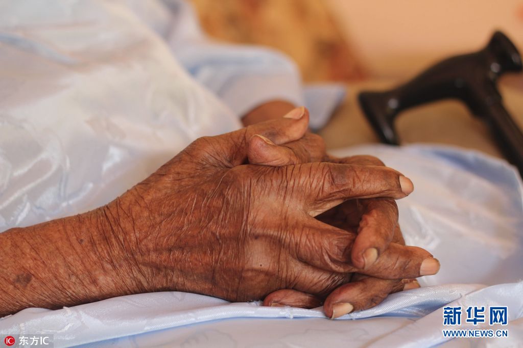 当地时间2017年4月16日,牙买加Duanvale,生活在牙买加西部山区的世界最老人瑞维奥莱特-布朗(Violet Brown)。 在上一位“世界最年长老人”埃玛-莫拉诺去世后,新的“世界最年长老人”是牙买加的维奥莱特-布朗,现年117岁。(图片来源:东方IC)