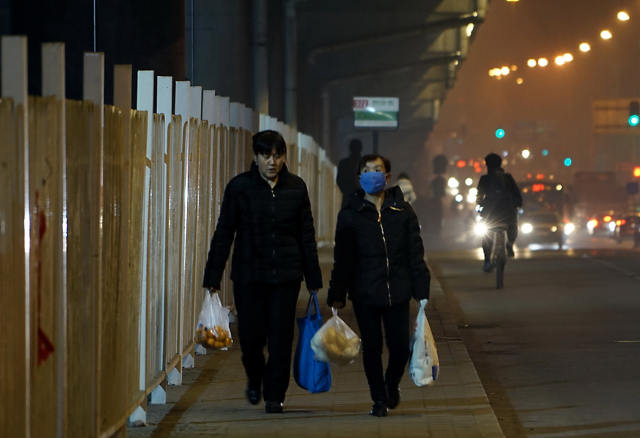 行人在北京西五环辅路上行走。(新华社记者李欣摄)