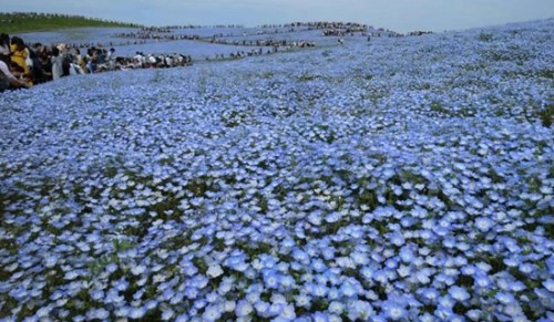 据悉,覆盖着日立海滨公园的喜林草估计达450万株,会盛开至5月底。