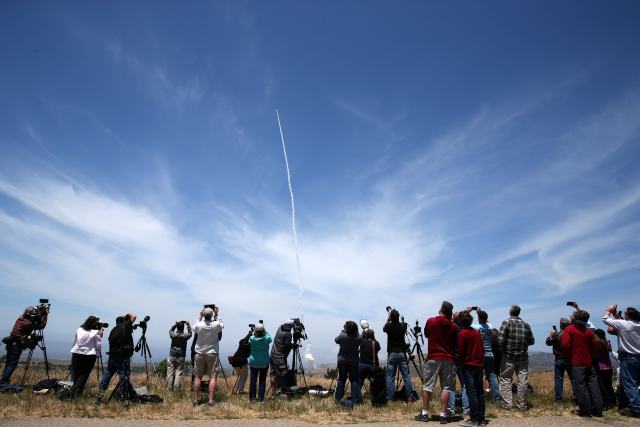 2017年5月30日,一枚拦截导弹从美国加利福尼亚州范登堡空军基地发射升空。(新华/路透)