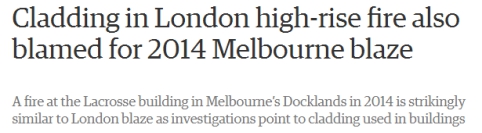 一些消防安全专家指出,火势蔓延极快的原因很可能在于易燃的外墙镶板。外墙材料易燃,想要逐层隔离火势几乎不可能,也会增加灭火难度。《卫报》指出,这场火灾与2014年曾经发生在墨尔本达克兰大厦的火灾“惊人的相似”,可能都与易燃的外墙材料有关。不过,这种猜测还没有得到官方印证。