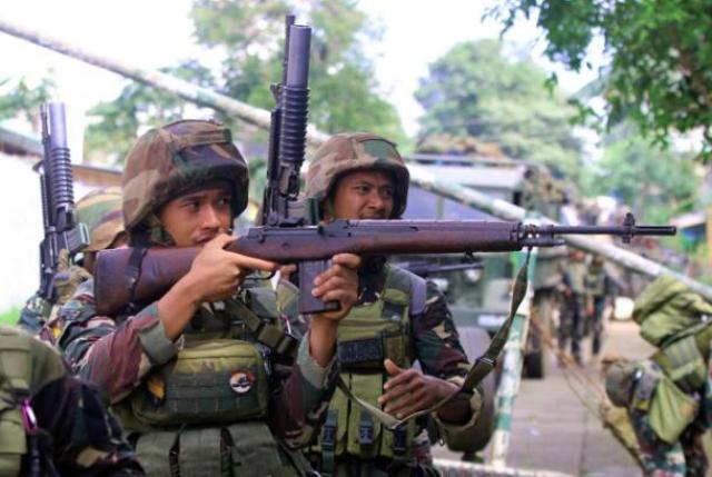 图为参与战斗的菲律宾政府军。(乌马利摄)