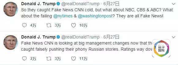 长期被CNN等主流媒体冷嘲热讽的特朗普自然不会放过这个机会,27日一大早,他就连发多条推特炮轰CNN。