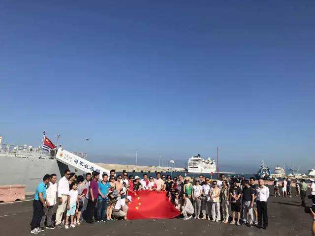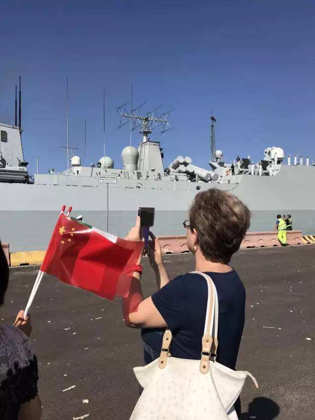 在异国他乡,看到雄壮威武的祖国军舰到来,游子们的心情都写在脸上。