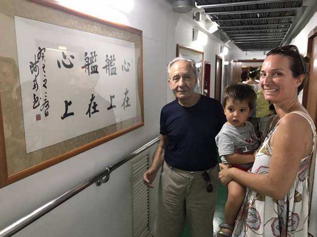因为不懂中文,米歇拉一家表示希望记者帮忙讲解长春舰上看到的一切,从船舱过道上的宣传画到书法,再到甲板上的各种装置,一家人很是兴奋。