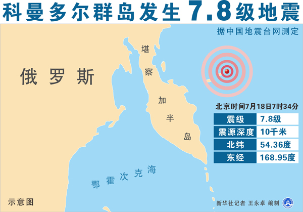 图表:科曼多尔群岛发生7.8级地震 新华社记者 王永卓 编制