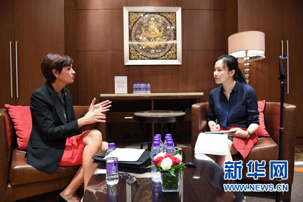 7月26日,美国艾奥瓦州州长金·雷诺兹在北京接受新华社记者专访。新华社记者 陈晔华 摄