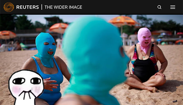 到了2012年,“脸基尼”就开始在国外大火。而这一切要感谢“助攻”路透社。那年的7月6日,路透社发布了一组青岛女(da)士(ma)戴着面罩在沙滩上休息的照片,引发海外网友关注。