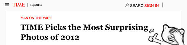 这张封面照片同时也被美国《时代周刊》选为“2012年度最令人吃惊照片”之一。