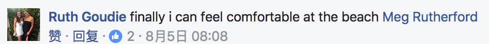 网友@Ruth Goudie则表示: “有了‘脸基尼’,我终于能舒舒服服待在海滩了。”