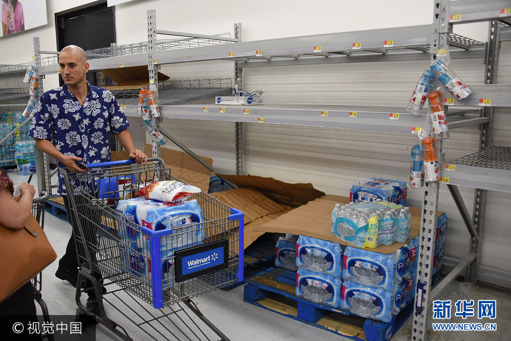5日,波多黎各、美属维京群岛和佛州的民众开始囤积水和食物,以应对将到来的飓风。一些超市周一晚些时候,饮用水已经卖完。