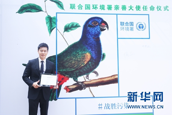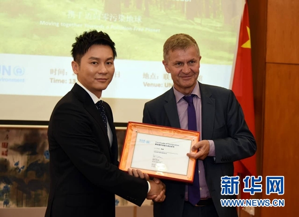9月13日,李晨被授予“联合国环境署亲善大使”称号。(图片由联合国环境署提供)