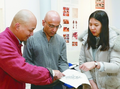 在英国伦敦英国王储传统艺术学院,中国艺术家向学员传授木版水印技艺。 图片为新华社发
