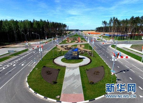 中白工业园已经建好的宽阔的公路。新华网发(闫东 摄)