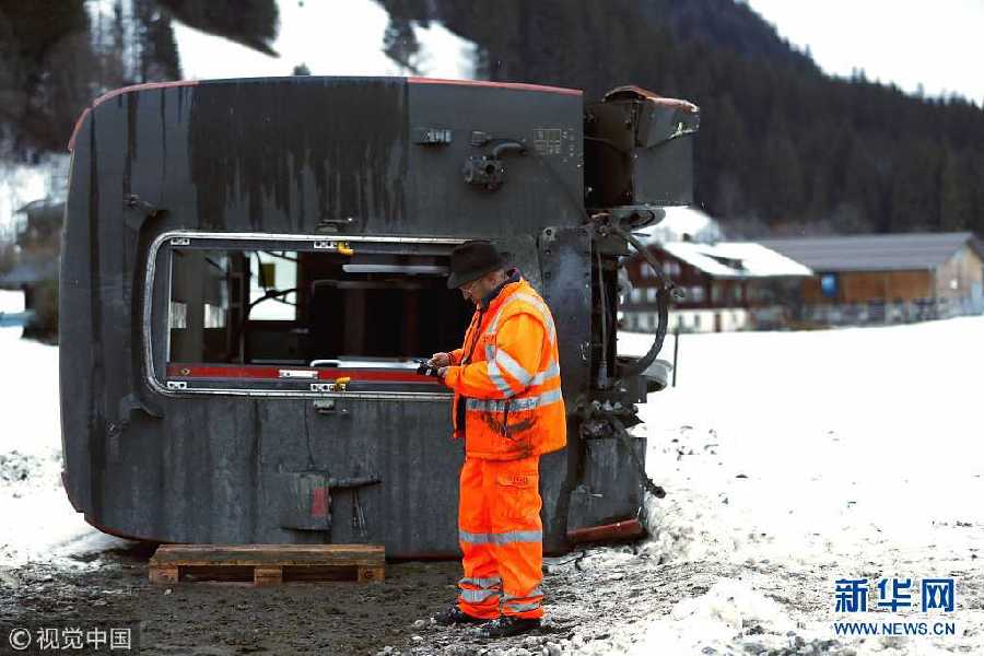1月3日,瑞士伦克,风暴“埃莉诺”来袭,一列火车被大风吹得脱轨了。风暴“埃莉诺”袭击该国,数千户家庭断电。瑞士气象局对该国大部分地区发出了大风警报,许多道路被关闭,一些航班被取消,部分地区的客轮交通被迫中断。瑞士警方称,有数人被困在圣加仑州的一处滑雪缆车上。而在伦克地区,大风把一列火车吹得脱轨了。(图片来源:视觉中国)