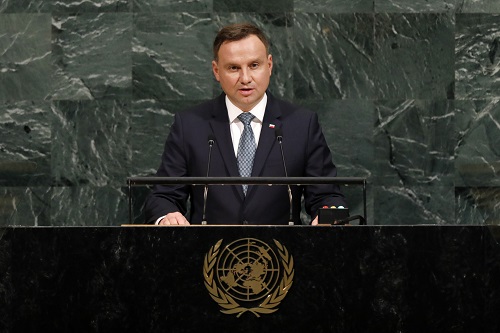 2017年9月19日在纽约联合国总部,波兰总统杜达在联大一般性辩论上发言。新华社记者 李木子 摄