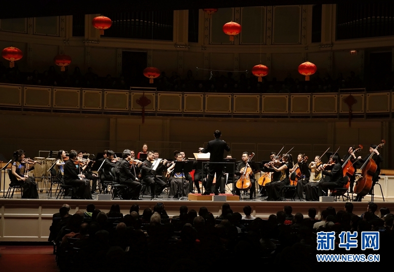 2月17日,在美国芝加哥交响乐中心,浙江交响乐团进行表演。新华网记者汪平 摄