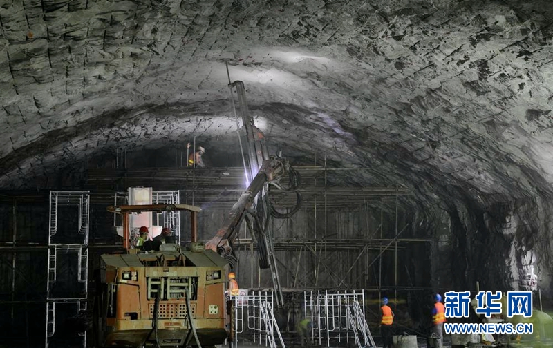 这是5月16日在老挝南部阿速坡省拍摄的南公1水电站地下厂房施工现场。新华网发 刘艾伦摄