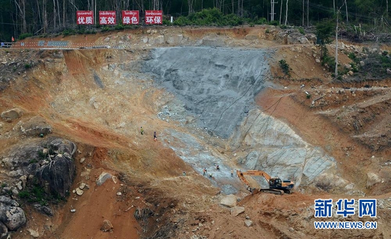 这是5月17日在老挝南部阿速坡省拍摄的南公1水电站大坝枢纽施工现场。新华网发 刘艾伦摄