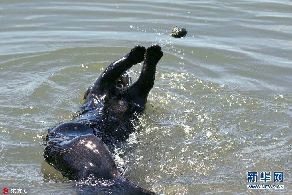 加州海獭玩抛石头 沉浸其中不亦乐乎(图)