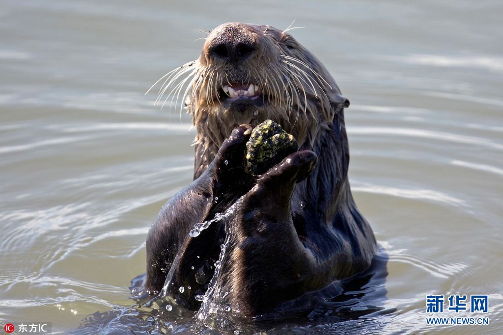 加州海獭玩抛石头 沉浸其中不亦乐乎(图)