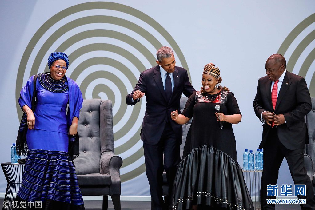 当地时间2018年7月17日,南非约翰内斯堡,南非举行活动纪念曼德拉100周年诞辰,美国前总统奥巴马出席活动并与曼德拉遗孀Graca Machel共舞。7月18日是已故南非前总统纳尔逊·曼德拉诞辰100周年纪念日。 (图片来源:视觉中国)