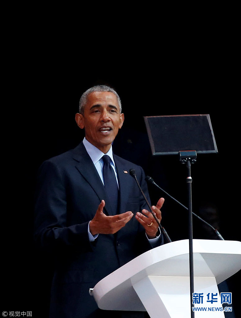当地时间2018年7月17日,南非约翰内斯堡,南非举行活动纪念曼德拉100周年诞辰,美国前总统奥巴马出席活动并在第16届曼德拉年度讲座上发表讲话。7月18日是已故南非前总统纳尔逊-曼德拉诞辰100周年纪念日。 (图片来源:视觉中国)