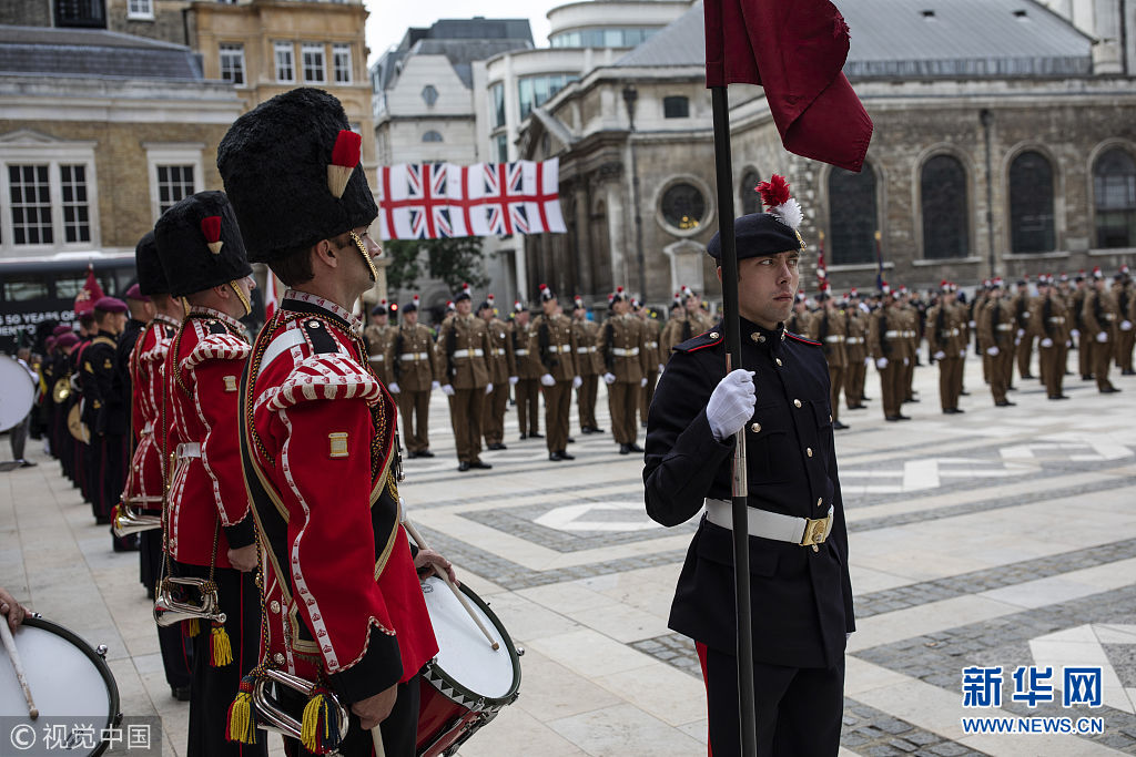 当地时间2018年9月5日,英国伦敦,皇家燧发枪兵团游行庆祝兵团50周年。 (图片来源:视觉中国)