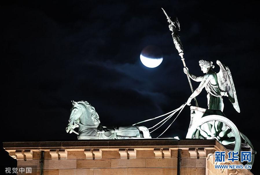 当地时间2019年7月16日,德国柏林,当晚出现月食景观。(图片来源:视觉中国)