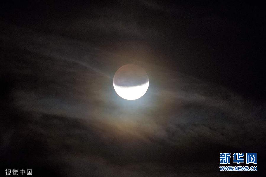 当地时间2019年7月16日,法国Lavau-sur-Loire,当晚出现月食景观。(图片来源:视觉中国)